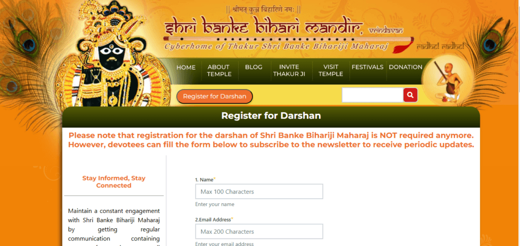 • Click the link www.bankebiharijiu.org which is the home page of the Banke Bihari Temple and the YatraDham darshan system website.