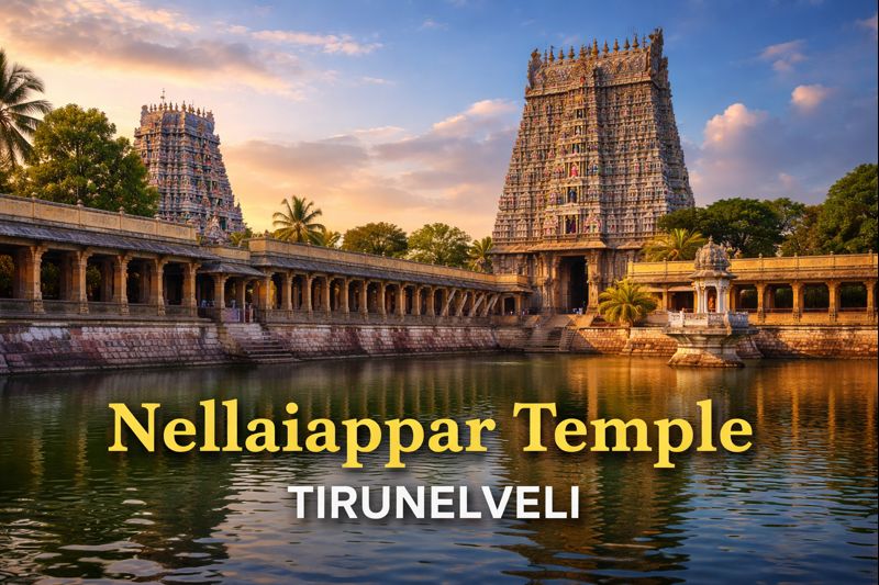 Nellaiappar Temple is a very old and famous Hindu temple in Tirunelveli city of Tamil Nadu. It is dedicated to Lord Shiva as Nellaiappar and Goddess Parvati as Kanthimathi Amman. The temple complex spreads over nearly 14 acres, which makes it one of the largest temples in South India. The temple is more than 1,300 years old, and major construction happened around the 7th to 9th century.