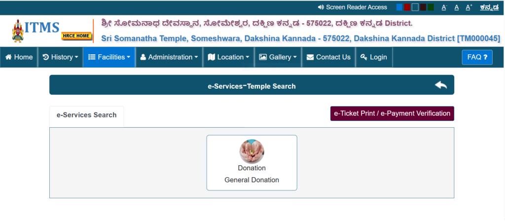 In Here you have to select e-services and moreover you will able to open the General Donation option and Online Reception.